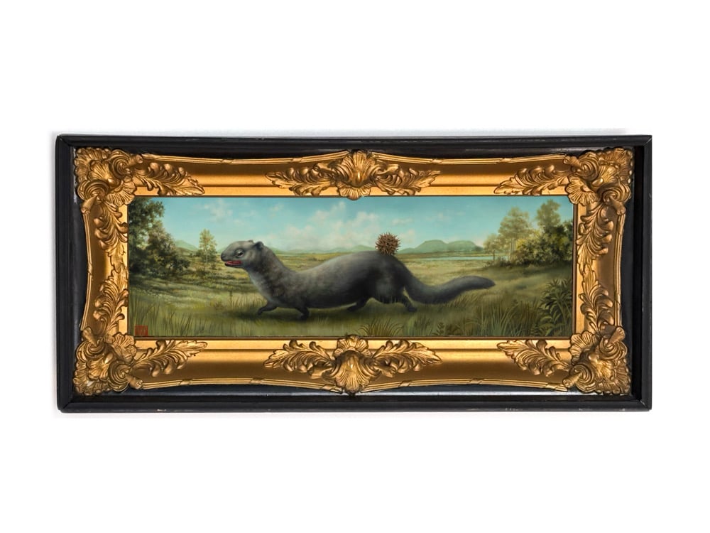 Title: The Faerie King’s Punishment Artist: Mab Graves Medium: Oil on hardboard Size: 6”x18” Framed Size: 11”x23”